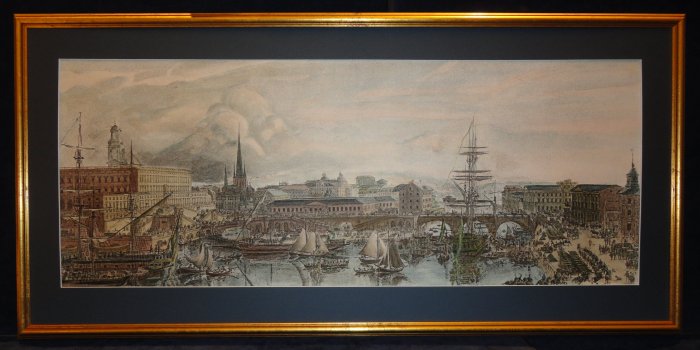 Akvarell (24x37) af J. F. Martin 1787 (eller i hans art) i Trollhätte kanal- och vattenverks förvaltningsbyggnad.