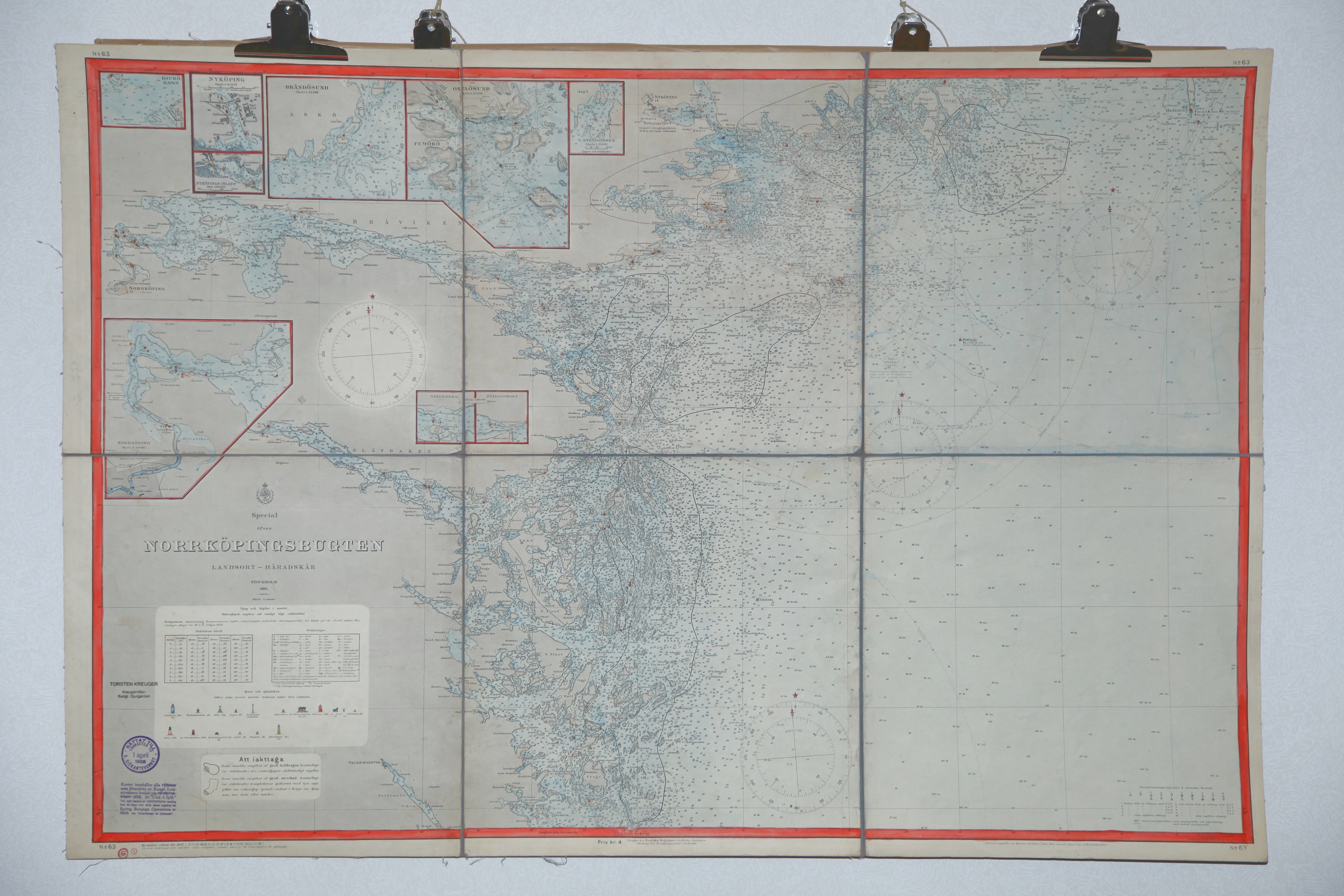 Infällda kartor: 'Djurö hamn', 'Nyköping', 'Nyköpings inlopp', 'Brändösund', 'Norrköping', 'Stegeborg', 'Ettersundet', 'Oxelösund', 'V. Stendörren'.